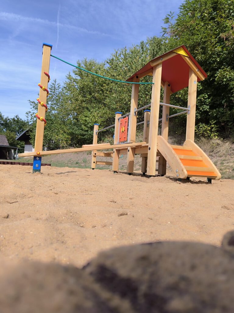 Es wurde ein Sandkasten mit einer Kleinkinderspielanlage, sowie zwei Balancierbalken angeschafft. Der Bereich wurde mit einer Tischtennisplatte ergänzt, die schon länger im Vereinsbesitz ist.