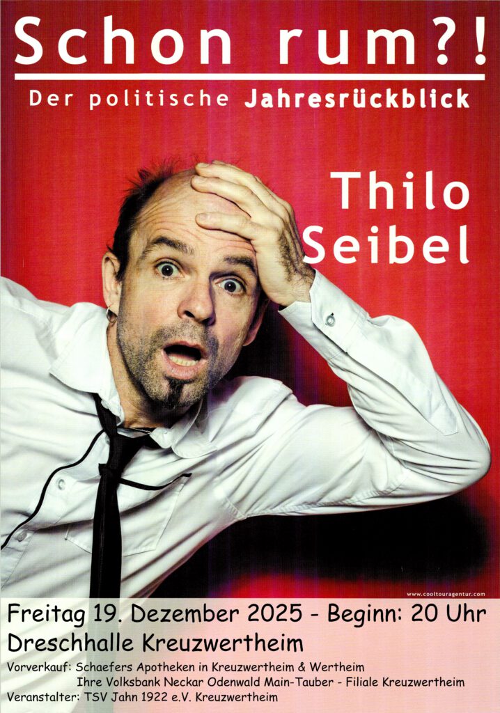 „Schon rum?!“ – Der politische Jahresrückblick von Thilo Seibel am 19.12.2025 ab 20 Uhr in der Dreschhalle Kreuzwertheim!